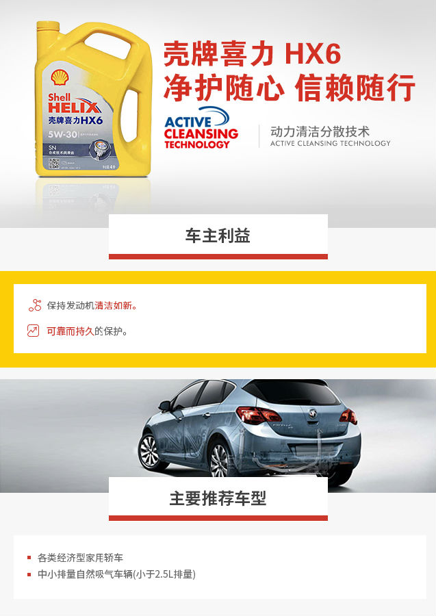 型號:喜力HX6 4L 5W-30 SN 機油分類:半合成機油 機油級別:SN 容量:4L
